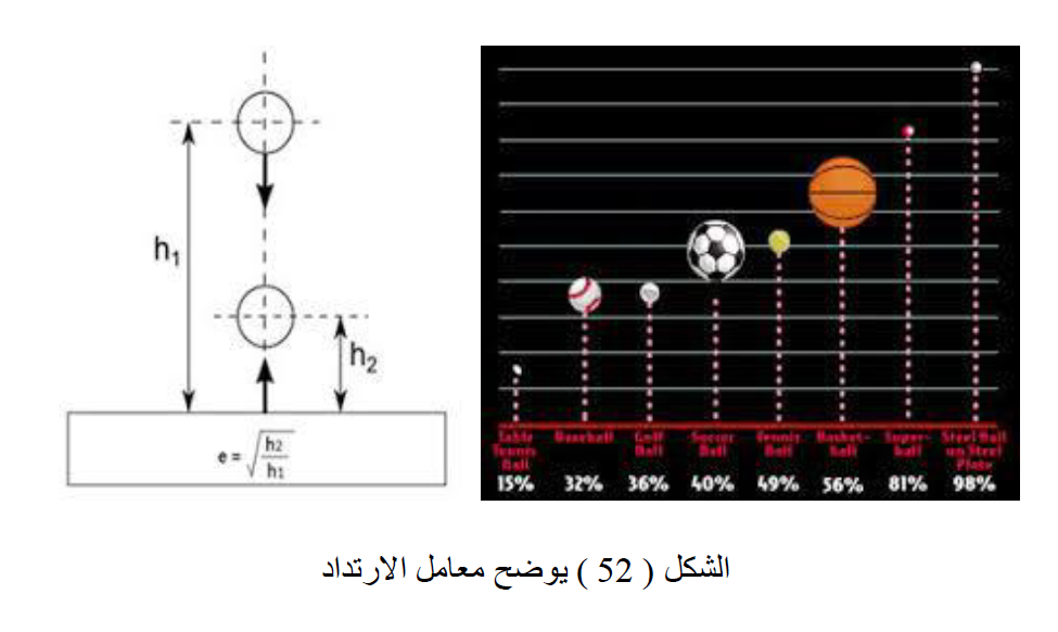 معامل الأرتداد ) coefficient of restitution ( الذي يوصف بأنه نسبة المطاطية عند أي